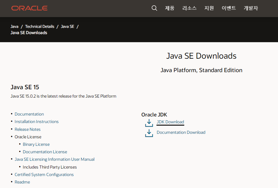 (https://www.oracle.com/kr/java/technologies/javase-downloads.html)