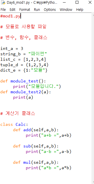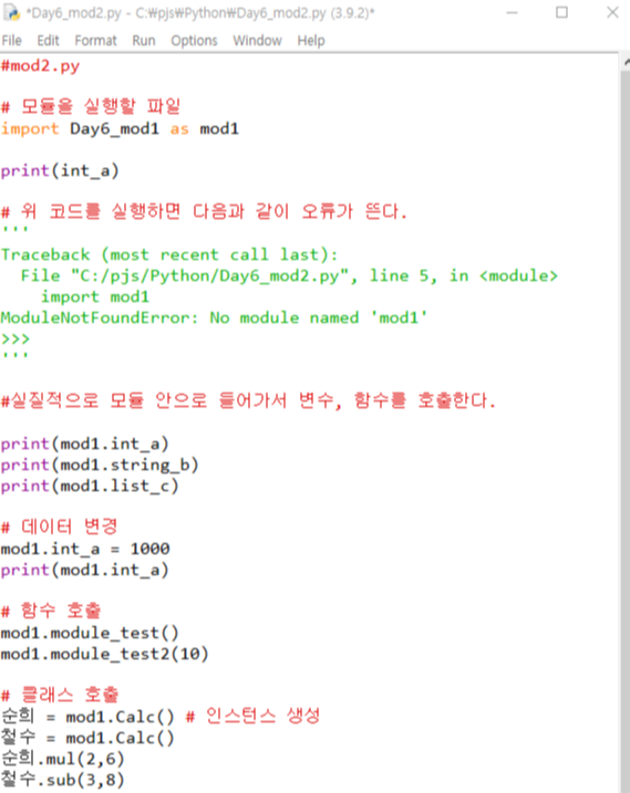 import as 를 통해 모듈 Day6_mod1를 불러오고 mod1으로 정의해준다.