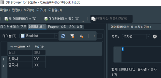 cur.execute("UPDATE Booklist SET Name='영어사' WHERE Name='중국사'")