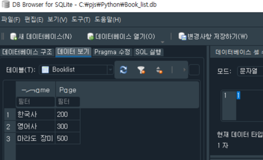 cur.execute("INSERT INTO Booklist Values('한국사','200')")