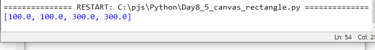 위의 사각형 객체의 좌표를 반환하면 다음과 같다. 만들어준 사각형을 id1에 담고 coords를 이용하면 좌표값을 다음과 같이 반환해준다.